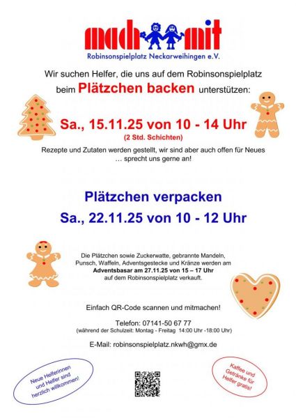 Zum Anderen brauchen wir tatkräftige Unterstützung beim Basteln und beim Verkauf (27.11).